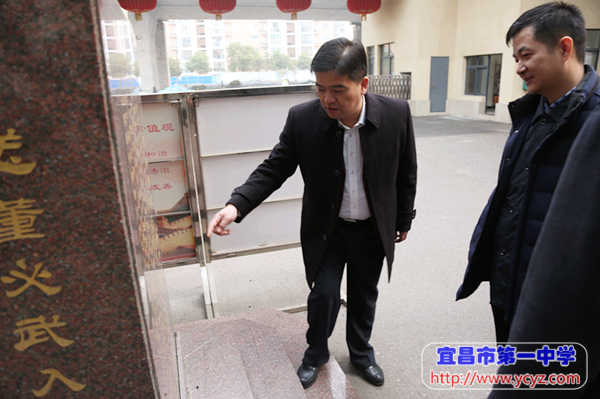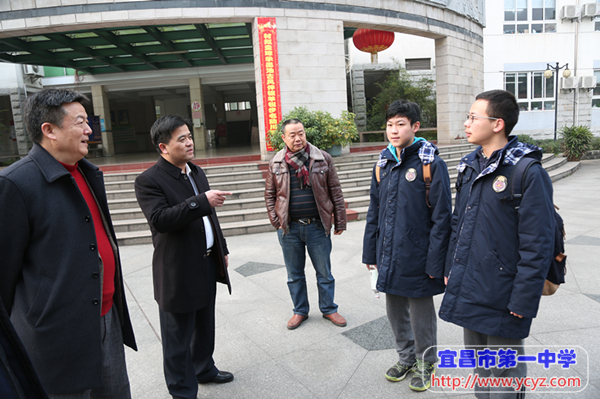 交流中,刘书记、唐市长认真听取了学校基本情况及近几年办学成绩的简要汇报,刘书记对我校的素质教育给予了充分肯定,对我校悠久的办学历史和突出的办学成果大加赞赏。当听到我校2016年高考获得十一项指标全部考评第一名后,更是连连称赞“了不起!”。站在一中优美的香樟路上,刘书记高兴地说:“市委市政府领导对为宜昌教育做出突出贡献的全体一中师生非常关心,我代表市委市政府向你和王老师及一中全体教职工表示慰问,对全体教师为教育和宜昌经济社会发展所做的贡献表示感谢!春节将至,给大家拜个早年,祝大家新春快乐!”