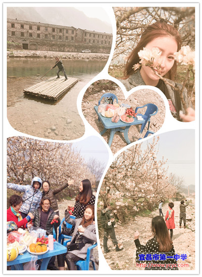 听着春天纷飞飘动的絮语,老师们聚在一起吃着精致的时令蔬果,划着竹筏,好不惬意!