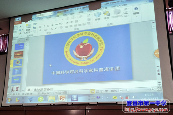 4月13日,中国科学院力学研究院研究员周家汉教授回到母校——湖北省宜昌市第一中学,在学术报告厅为高一学生作了一场精彩的《神秘的爆破》的科普讲座。副校长李大海热情接待并致欢迎辞。