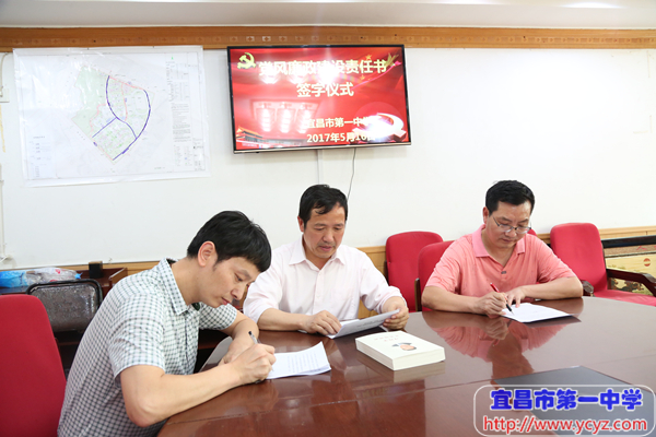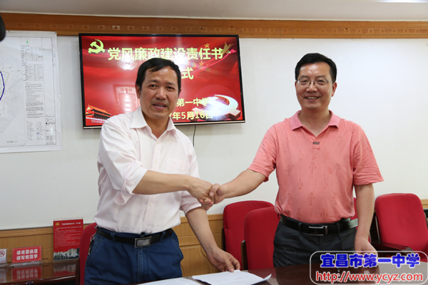 “带头学习廉政理论知识,加强对教职工党性党风党纪教育……”5月16日,我校全体中层干部与学校党委书记蒋含丹同志签订了《宜昌市第一中学中层干部党风廉政建设责任书》,标志着我校2017年党风廉政建设宣教月活动走向深入。