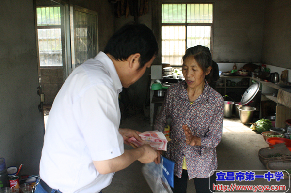 没有寒暄与客气,顾不上吃一口饭,来不及喝一口茶,扶贫小组就在村委向主任等当地干部及驻村工作队刘卫东、曾祥文等队员的带领下,来到马渡河旁的副校长陈鹏帮扶对象向宗豪家里。看到他已经从失修的旧房搬进了政府安排的乡亲家中,了解到政府正在光伏站附近还建一所住房,蒋书记和陈校长都为他感到高兴。经过交流,扶贫小组高兴地知晓了他现在已经在乡政府修路队上临时帮工,每天可以收入近100元,看到他能够通过自己的努力暂时解决生计问题,陈校长十分高兴,鼓励他努力做工,同时结合实际发展养殖,并从教师捐赠的扶贫资金中拿出部分购买猪仔的资金和50斤大米捐助他。