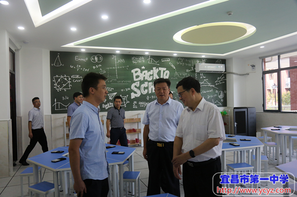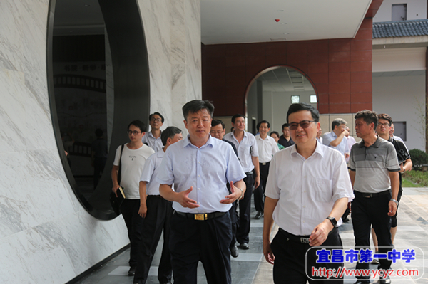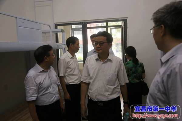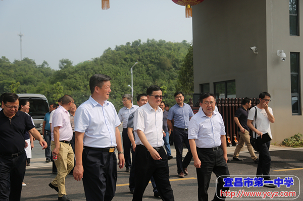 校长付全新向郭省长简要介绍了学校历史、办学现状,并就郭省长关心的学科教室使用、食堂用餐、学生住宿等入驻准备工作做了详细汇报。郭省长对学校办学理念、校园文化建设和新校入驻准备工作表示赞赏,他强调,目前国家和湖北省正在全面推行高考改革,这为学校的建设和发展带来了新的机遇,宜昌一中应该以此为契机,全面提升学科建设水平和办学质量,他期待并祝愿学校在未来的发展中取得更好的成绩。付校长感谢郭省长对宜昌一中的关心,并表示将在市委、市政府、市教育局的坚强领导下,认真谋划,统筹安排,全面做好新校区入驻工作,以更加优异的办学业绩向社会、人民递交一份满意的答卷。