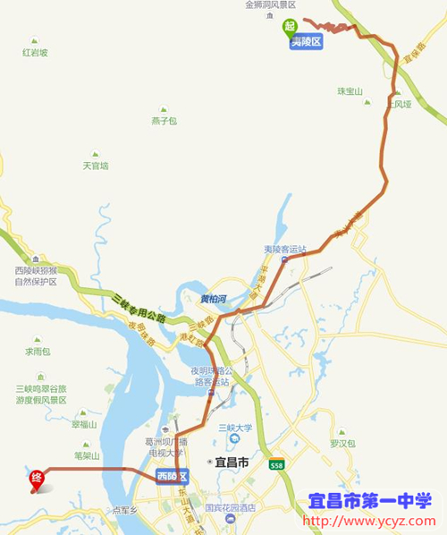 七、夷陵区方向→ 宜昌市一中新校区(自驾路线图)