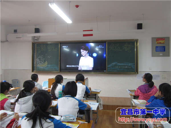 会上,五彩缤纷的电子荧屏闪动着鲜活美丽的画面,精心布置的黑板体现了同学们对此次活动的准备与重视。同学们目不转睛,沉浸在安静的观看氛围中,细心感受着节目主持人所说得一字一句。时而凝眉,时而微笑,时而捧腹,时而喝彩……