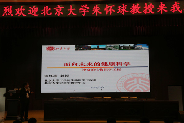10月7日下午,北京大学教授、博士生导师朱怀球专程来到我校新校区,为高一、高二年级同学作了一场题为《面向未来的健康科学——神奇的生物医学工程》的科普讲座。讲座深入浅出,精彩纷呈,让到场的全体一中学子大呼过瘾。