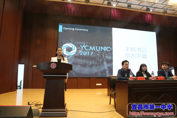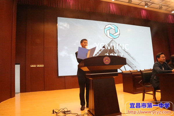 宜昌一中纪委书记王桃宣布第四届模联会议开幕