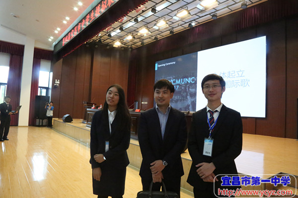 大会最后,学校纪委书记王桃对全体参会同学、教师表示了热烈欢迎,并宣布宜昌市第四届中学生模拟联合国大会开幕,大会在庄严的《国际歌》声中正式启动。