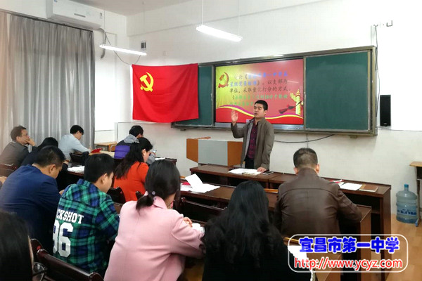 此次会议共六项议程。第一项,支部书记蔡利鹏同志带领全体党员学习党员义务,引导党员尊崇党章、遵守党章、维护党章,增强党员的党章意识。第二项,深入学习十九大精神。本月中旬,习近平总书记在十九大报告中,提出一系列新思想、新论断、新举措。我支部全体党员选取其中重要的部分进行学习。支部书记蔡利鹏同志也借此机会将自己的宝贵心得分享给全体党员,获得阵阵掌声。第三项,支部全体党员听取了省纪委关于5起高校领导干部违反中央八项规定精神典型问题的通报。支部书记蔡利鹏同志强调全体党员要引以为戒,持之以恒地落实中央八项规定精神,牢固树立“四个意识”,营造风清气正的教学育人环境。第四项,讨论《宜昌市第一中学五星级党员标准》,并严格按照五星级党员标准,评选出本季度的“五星”党员。第五项,纪委书记王桃同志对十九大报告的学习做出重要补充,并对党员后期的工作重点给予切实可行的指导。第六项,全体与会党员在支部书记蔡利鹏同志的带领下,面对庄严的党旗重温入党誓词并缴纳党费。