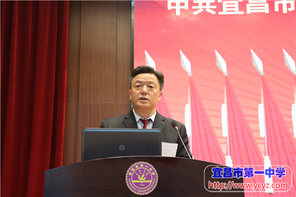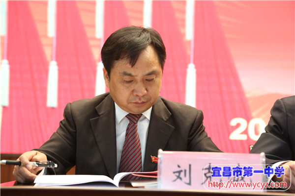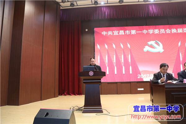 报告最后,陈鹏同志代表学校党委,号召全体党员同志,抓住新的机遇和挑战,在党的十九大精神指引下,在党的教育方针的引领下,在学校党委和行政的坚强领导下,团结一致,齐心协力,坚定不移走内涵发展之路,坚持科学发展、优质发展、特色发展、精品发展,为实现宜昌市第一中学“三步走”发展战略制定的宏伟蓝图目标而不懈奋斗。