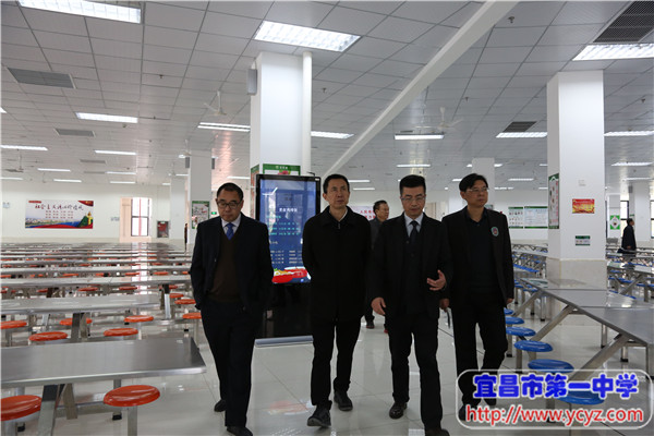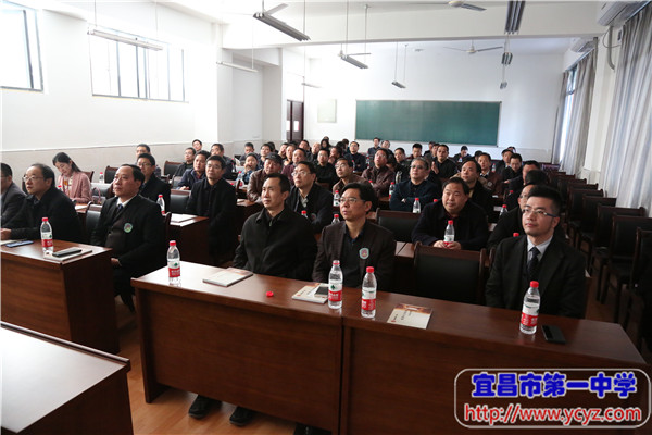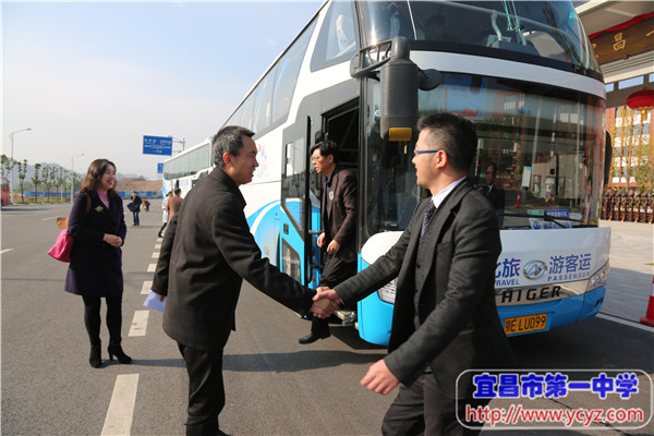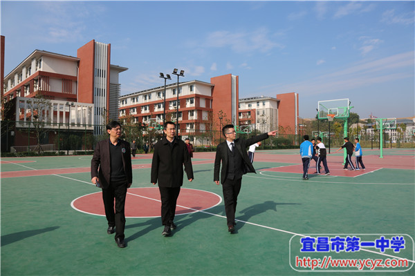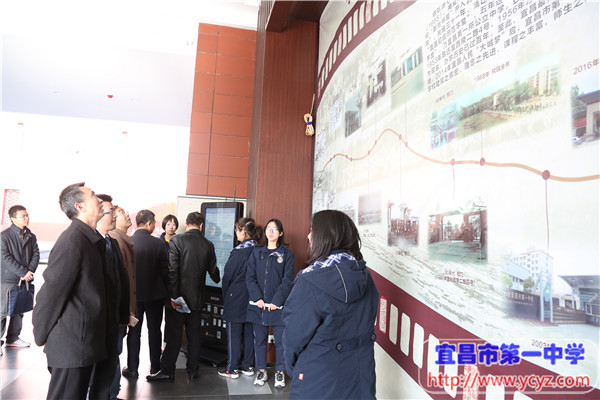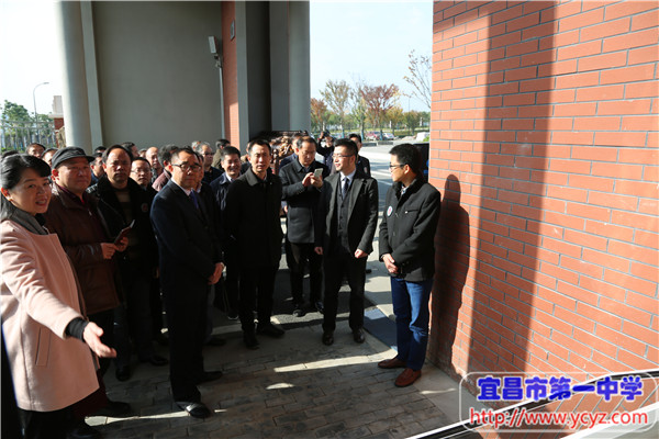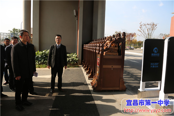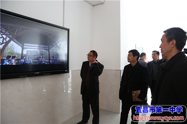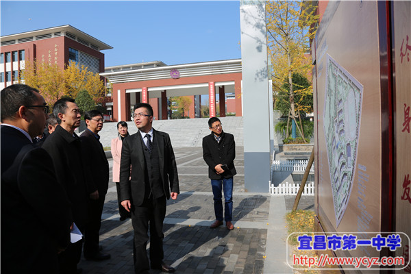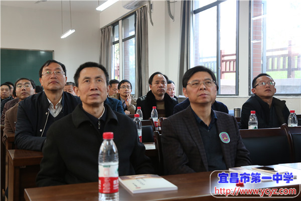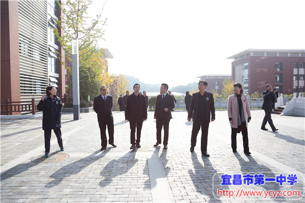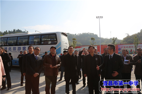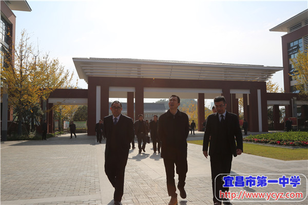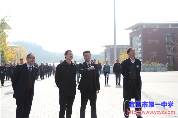左起:宜昌一中副校长闫明、省政府教育督导室副主任督学谢新松、宜昌一中党委书记陈鹏