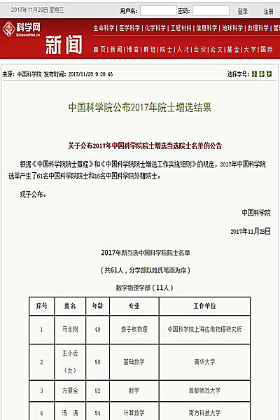 2017年11月,当选中国科学院院士。