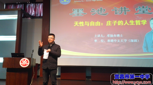 12月11日下午,香港中文大学(深圳)人文社科学院邓扬舟博士专程来我校,为高三学子带来了一场题为《天性与自由:庄子的人生哲学》的讲座。我校党委书记陈鹏、教务处副主任肖洁、高三年级副主任熊剑接待并聆听了讲座。