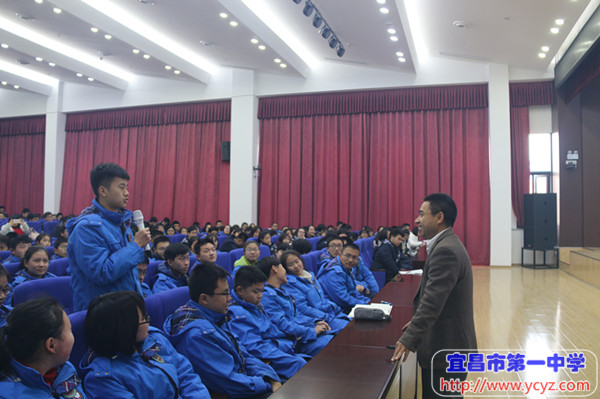 最后,陈鹏书记进行总结发言,他选读了《人物》杂志2017年12期中对张教授的专访文章中的片段,引用权威部门对他的评价。陈书记盛赞张教授关爱学生、热爱宜昌、有家国担当,是位平易、睿智、有情怀的杰出人物,同时也希望一中学子见贤思齐,向张教授学习。