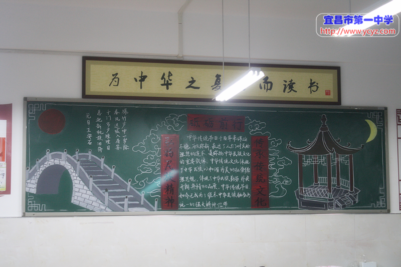 2017年12月,我校为弘扬传统文化,发扬传统精神,组织了题为“弘扬传统文化,传承传统节日”的主题黑板报评选。高一高二全体班级积极参与。