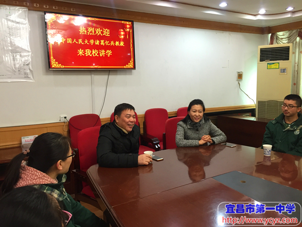 1月5日上午,中国人民大学国学院副院长诸葛忆兵教授及中国出版传媒中版文化总经理包岩女士专程来我校,与高三学生代表进行座谈。学校党委书记陈鹏、教务处副主任肖洁及高三年级主任舒方帅、副主任熊剑陪同接待。