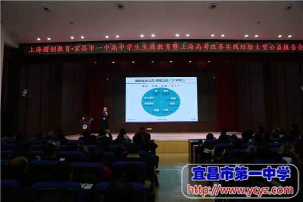 2018年1月13日,上海圆创教育﹒宜昌一中高中学生生涯教育暨上海高考改革实践经验大型公益报告会在我校学术报告厅召开。出席报告会的嘉宾有上海圆创科技有限公司总经理程稳、上海圆创生涯教育首席导师李萍教授、宜昌市教育局副局长翟志刚以及宜昌市教育战线各位领导和老师共计400余人,我校校长付全新作为嘉宾主持出席本次盛会。
