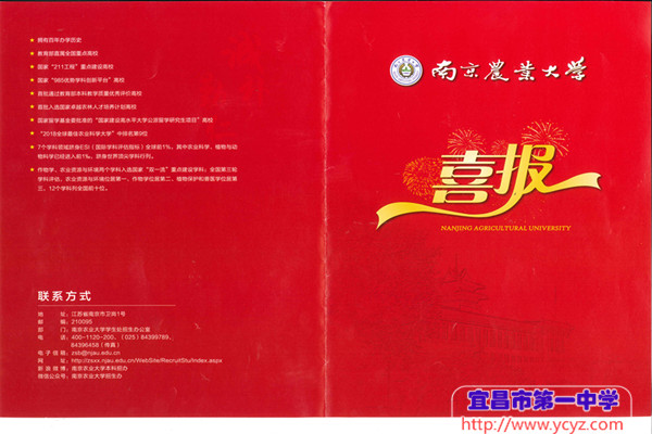 南京农业大学祝愿我校教育事业蒸蒸日上,再创辉煌!热烈欢迎更多宜昌一中优秀学子关注并报考南京农业大学。