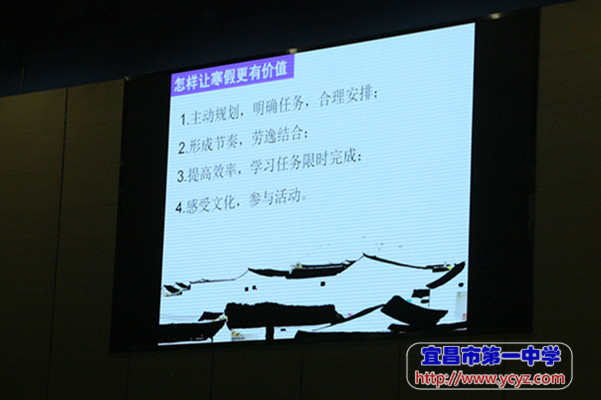 最后,闫校长给大家四个温馨建议:1.寒假要有规划 2.学习要有节奏 3.任务必须限时完成。4.感受文化,参与合作。