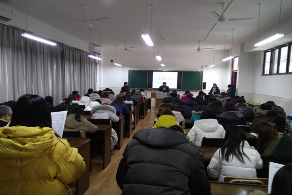 教务处邹靖主任在高一分会场首先就高一期末考试考场分布、试卷领取要求、监考教师职责以及试卷扫描等作了要求;高一年级蔡利鹏主任随后就期末考试考场布置、分数登记以及寒假要求作了说明。教科处主任赵勇受邹靖主任委托,在高二年级监考会上主讲高二期末考试相关要求;随后,高二年级徐海波主任就考场布置、监考纪律、学期后期工作要点以及寒假阳光工程作了强调说明。