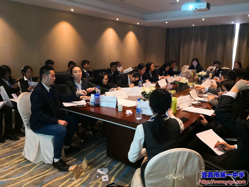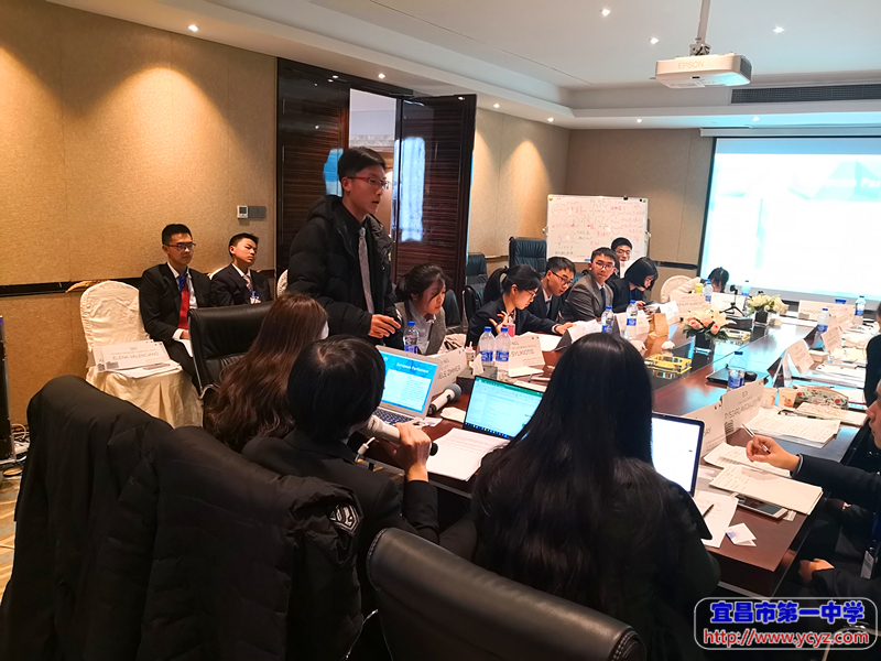 2018年2月10日早晨,我校模联代表团共26人在宜昌东站相聚,随带队老师一同踏上前往武汉的征程,拉开了为期四天的武汉模拟联合国大会的序幕。10日下午,在经过隆重的开幕式之后,我校代表们就参与到各自分会场紧张热烈的讨论磋商中。此次武汉会议中,我校代表共参与了六个会期的激烈讨论。他们就各自的议题,为各自代表的国家、政党或利益团体发声。编写材料字斟句酌,辩论发言清晰敏捷,代表们精彩的表现无时无刻不彰显着一中学子的卓越风采,让会场内外都闪烁着真理的美妙火花。