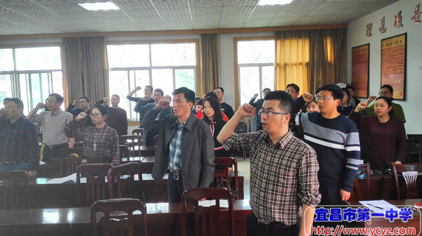 在全体党员现场交纳党费,重温入党誓词,集体诵读党章,评选第一季度五星党员后,组织委员熊江华同志、宣传委员熊剑同志分别带领党员们学习了十九届三中全会精神和2018年政府工作报告极,纪检委员陈少文同志传达学校纪委2-3月督查工作情况。
