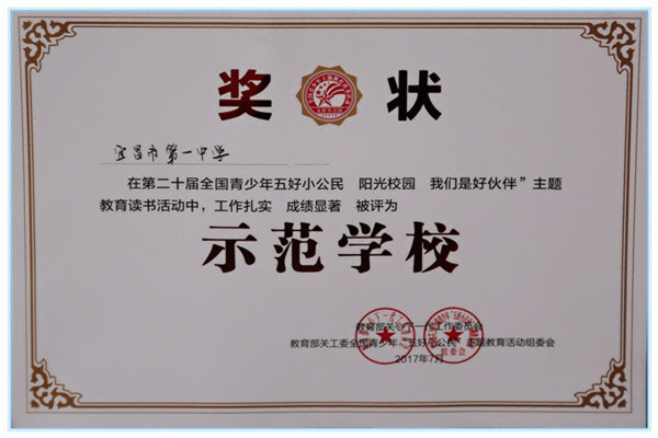 我校被评为第二十届全国青少年教育读书活动示范学校 2018-04-12 15:37:17 近日,从教育部关工委全国青少年“五好小公民”主题教育活动组委会传来好消息,我校在第二十届全国青少年“五好小公民阳光校园,我们是好伙伴”主题教育读书活动中,被评为示范学校。