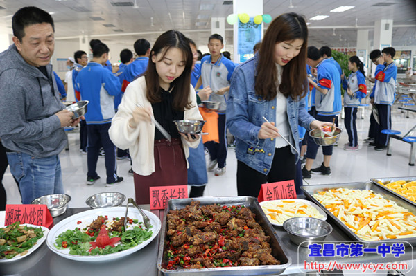 4月17日下午,宜昌市一中第七届服务育人文化节厨艺擂台赛在新校区校园餐厅一楼隆重举行,10多位学生家长和高一年级的60多名学生品尝了厨师们精心烹调的佳肴,色香味俱全的美食获得了品尝者们的一致赞扬。本次比赛不仅仅有校园餐厅的厨师们参加,还有5名学生家长现场一展厨艺、老师们和同学们学拉拉面,这些活动促进了学校食堂和家长、师生们的交流与信任!