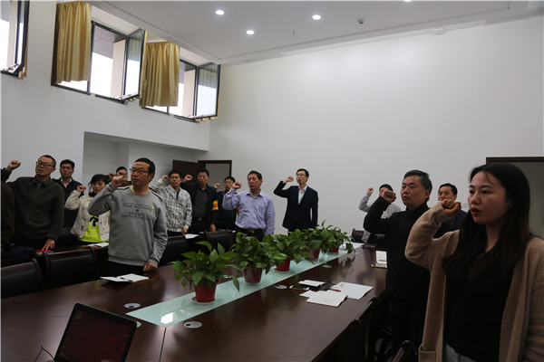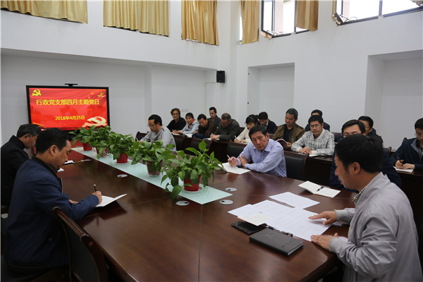 行政支部举行四月主题党日活动 2018-04-26 16:22:42 4月25日,我校行政支部举行主题党日活动,主题为“学习践行习近平新时代中国特色社会主义思想”。 首先,同志们积极缴纳党费,在张霜同志带领重温入党誓词,回顾申请入党时的思想激情和奋斗追求,回顾入党宣誓时的庄严承诺和坚定决心,并集体诵读党章。 接着, 支部书记朱圣柱同志给同志们讲党课,学习习近平新时代中国特色社会主义思想,学习《市教育局直属机关党组织党建基础工作规范达标年实施方案》、《市教育局“走基层、解难题、办实事、惠民生”主题实践活动方案》。 最后,学校党委委员、工会主席郭永寿同志对本次活动作点评,他指出,同志们不仅要认真学习,还要深刻领会党中央和各级上级党组织传达的精神,全面贯彻党的基本理论、基本路线、基本方略,更好地引领党和人民事业发展,以实际行动履行党员义务和责任。 支部书记朱圣柱同志讲党课重温入党誓词学习党章党委委员郭永寿同志点评