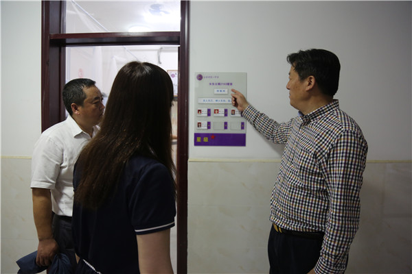 付校长热情地接待客人们,带领大家先后参观了校大门、礼贤广场、教学楼、墨池书院、运动场、学生公寓、餐饮中心等场所,并介绍学校情况。经过现场参观和付校长的介绍,客人们深入了解了我校校园建设及布局、学校管理等情况,以及校大门设计、校园监控系统、校园门禁系统、学校LOGO、历史变迁、寝室管理及文化等细节。参观过程中,我校很多学生十分有礼貌地与老师们打招呼,这一细节,给客人们留下了十分深刻的印象,大家纷纷赞叹宜昌一中学生所具有的优秀品质。