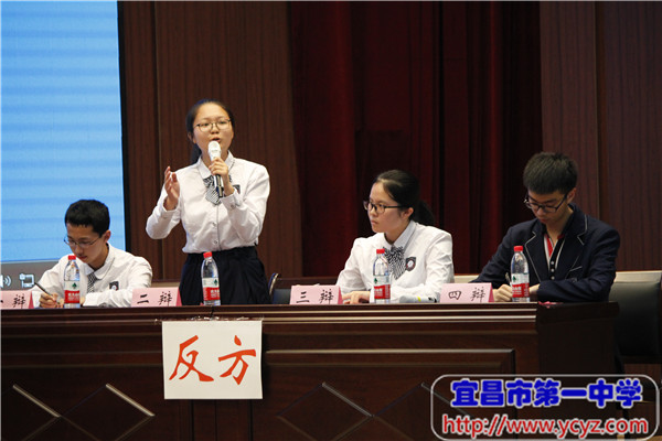 文以载道,利剑出鞘。5月18日晚上6点40分,宜昌一中墨池报告厅内热闹非凡,第七届读书文化节高二年级辩论赛总决赛在此举行。经过一场初赛、三场复赛,最终挑选出八位佼佼者组成正反对阵双方,即文科一中梦之队和理科清言留彰队。