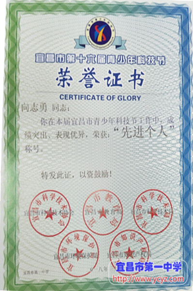 | 邢晨曦 | 宜昌市第十六届青少年科技节科技创新作品 | 二等奖 | 向志勇 |