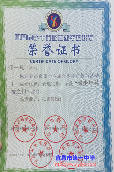 | 龚一凡 | 宜昌市第十六届青少年科技节科技创新作品 | 一等奖 | 龚一凡 |