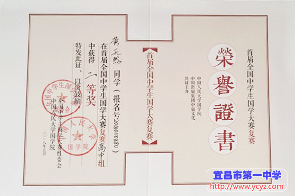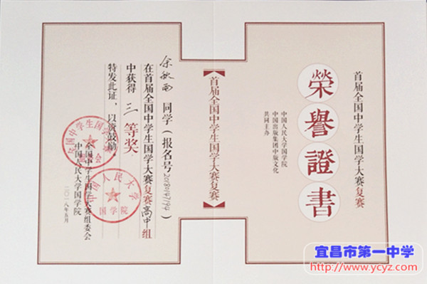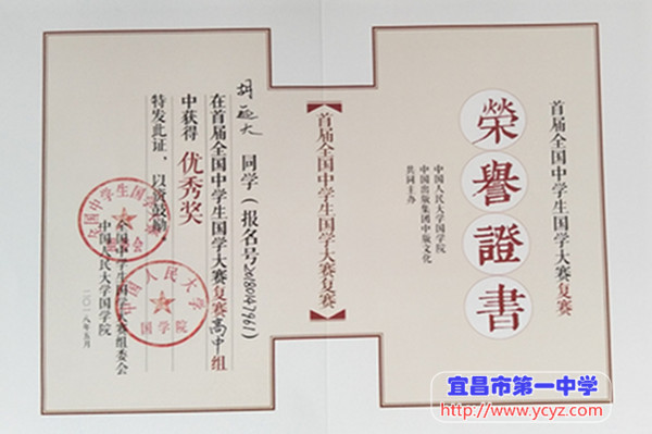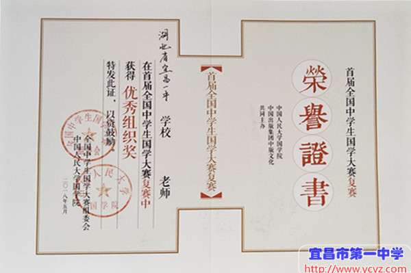 首届全国中学生国学大赛优秀组织奖获得者——宜昌市第一中学