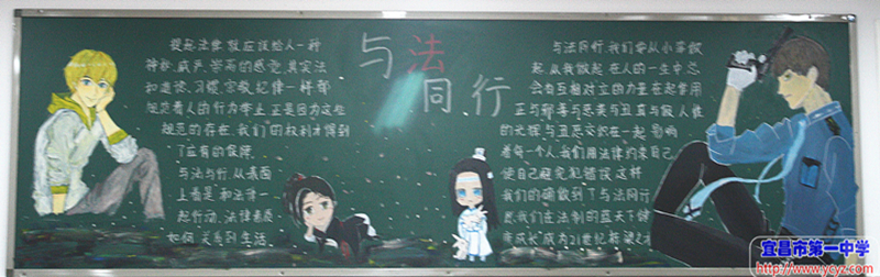 六月是本校法制教育月,同时6月26日也是国际禁毒日。为了牢固树立法制观念,增强法律意识;提高同学们对毒品的警惕意识,本校开展了以“与法同行”和“远离毒品” 为主题的黑板报活动。同学们通过运用水粉,书法,粉笔画等富有特色的表现手法,在良好的审美与美术功底的基础上充分展现了“法”与“毒”的相关知识,很好地向同学们进行了宣传。