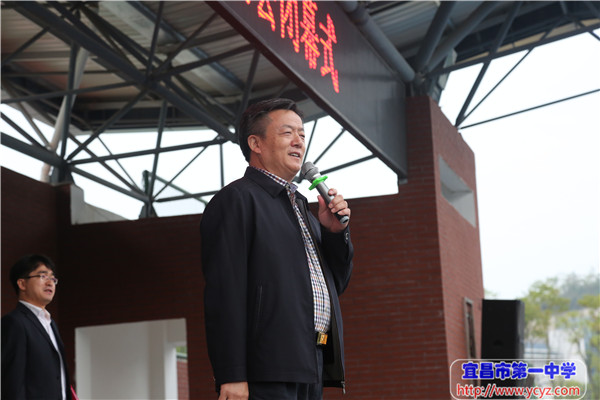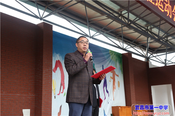 校长付全新宣布宜昌市第一中学第22届体育艺术节暨65届田径运动会胜利闭幕
