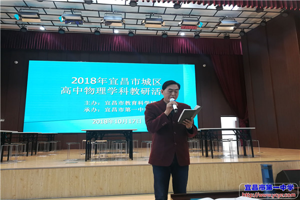 10月17日,由宜昌市教育科学研究院主办,宜昌一中承办的“2018年宜昌市城区高中物理教研活动”在我校墨池书院报告厅隆重举行,物理教研员郑慧平老师组织宜昌城区各高中学校的100多名物理教师齐聚一堂,为高一年级新高考探索方向,为高三年级一轮复习备考研讨科学方法。