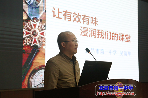 吴清华老师是全国高中数学优质课竞赛一等奖获得者,湖北省优秀数学教师,全国高中数学联赛优秀教练员,宜昌市学科带头人,点军区第八届政协委员,现任宜昌市一中数学教研组组长。吴老师讲座的题目是“让有效有味浸润我们的课堂”,他从以下三个方面娓娓道来:(一)努力让每堂课都有效,这是学生需要的课堂;(二)努力让每堂课都有趣,这是学生喜欢的课堂;(三)努力让每堂课都有味,这是学生向往的课堂。他结合自己20多年的教学经历给老师们上了一堂“有效、有味”的校本课,他总结说:“课堂上一位别具一格、底蕴深厚的老师绝对会成为学生心目中的偶像,也定能激发学生对你所教学科的无限兴趣。 让课堂有效、有趣、有味,是老师永恒的价值追求。”