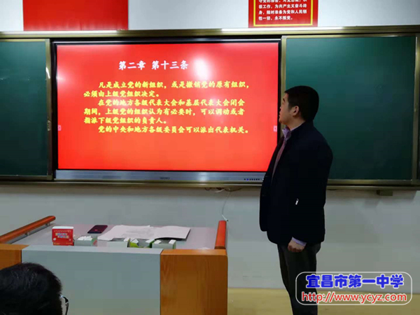 11月5日下午,中共宜昌市第一中学第二党支部在高二教学楼(闻喜楼)一楼党员活动室,举行了十一月支部主题党日活动。本次党日活动由支部书记蔡利鹏同志主持,学校党委书记陈鹏同志及支部全体党员参加了此次活动。
