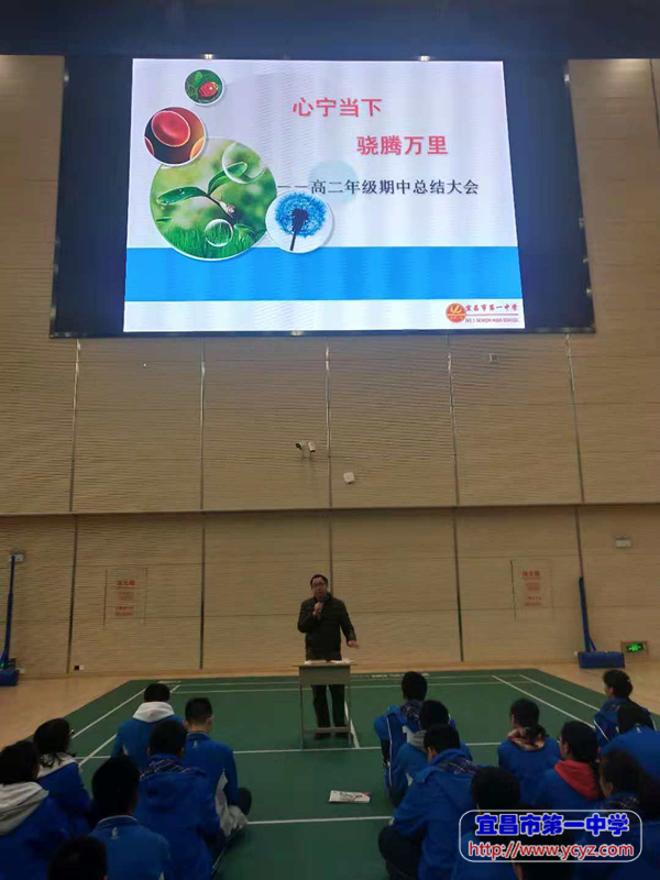 11月23日下午,我校高二年级在体艺中心召开了全体学生期中总结大会,年级副主任周继业主持会议。