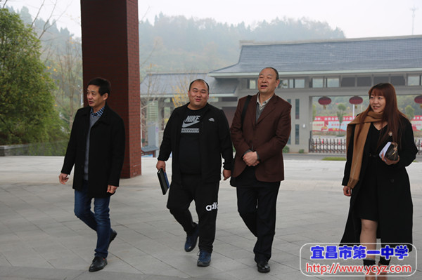 李大海副校长、潘琴主任陪同劲牌慈善基金会刘秘书长(左二)、市慈善总会余会长(左三)参观校园