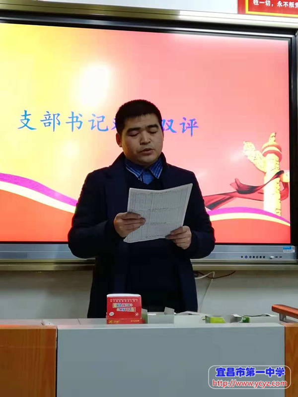 12月5日下午,中共宜昌市第一中学第二党支部在高二教学楼(闻喜楼)一楼党员活动室,举行了十二月支部主题党日活动。本次党日活动由支部书记蔡利鹏同志主持,学校党委书记陈鹏同志及支部全体党员参加了此次活动。