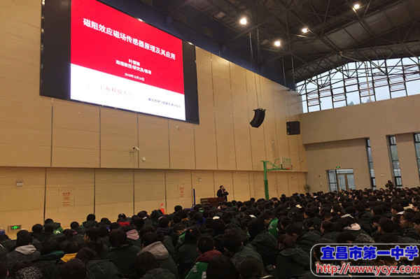 12月10日下午,上海科技大学助理教授、研究员叶朝锋为我校高一年级全体学生带来题为“基于磁阻效应的磁场传感器原理及其应用”的科普讲座。讲座在学校体育馆举行,学校副校长李大海主持讲座并致欢迎辞。