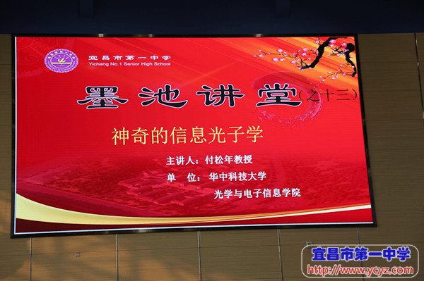 活动在体育馆举行,副校长闫明主持,全体高一学生参加,付松年教授从光子学发展讲到光子学的现状,描述了信息光子学广阔的应用,整个过程深入浅出,生动活泼。在自由提问环节,同学们结合自己的日常生活和课外阅读进行提问,问题涉及到网络安全的管理,激光武器的应用等等,付教授结合信息光子学技术发展以及自己的科研课题,告诉学生激光摧毁卫星的技术对我国来说已不是难题,但仍有巨大的发展空间,他鼓励同学们以后要积极投入相关研究中,投身于我们国家的国防事业;光纤生物探针的相关技术也在逐渐成熟,未来广阔的应用领域还等着同学们去大胆开拓。