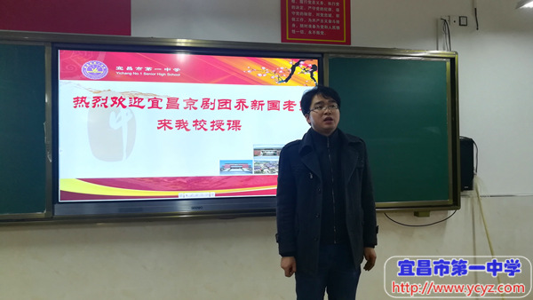 12月25日中午,宜昌市京剧团乔新国老师专程来到我校,为我校高一学子带来了一堂题为《传承与继承——京剧的基本知识》的京剧课。授课活动由学工处副主任唐志海老师主持,高一年级副主任熊剑老师及部分班主任老师参与。