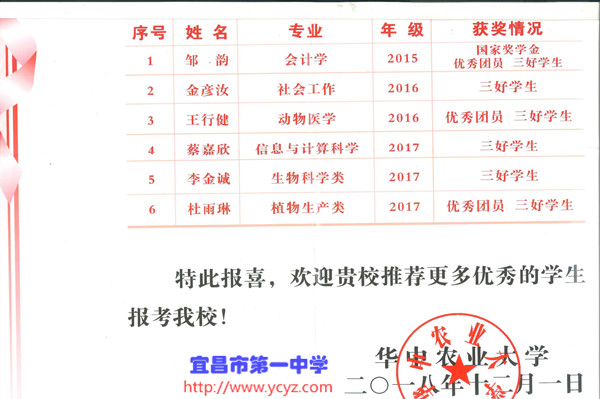 特此报喜,期盼更多优秀学生报考华中农业大学!