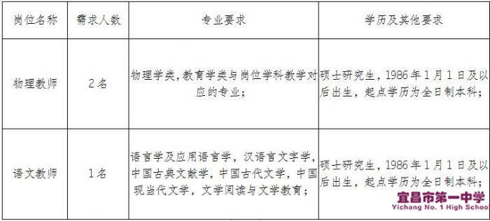 为进一步优化师资结构,根据《宜昌市高层次创新创业人才和急需紧缺人才引进工作暂行办法》(宜办发〔2016〕18号)和《宜昌市2021年度高层次和急需紧缺人才引进校园专项招聘工作方案》规定,我校拟引进物理教师2名、语文教师1名。
