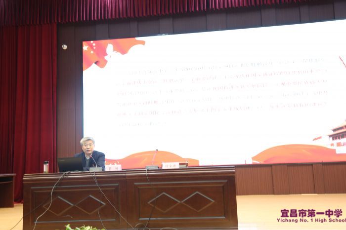 学校党委副书记、校长付全新同志主持会议,在认真听完报告后,他表示,覃局长的报告非常全面、非常深刻、非常智慧。学校将继续深入学习贯彻党的十九届五中全会精神,团结带领全体“一中人”一起努力奋斗,把一中办得更好,为宜昌高质量发展做出一中贡献。