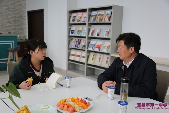 茶歇会氛围活跃,与会人员畅所欲言,学生代表们为学校的发展及管理积极建言献策,校长付全新老师则一一予以耐心细致的交流解答。来自高二年级的翁宇航、覃宁江隆同学和来自高三的尹睿同学结合自身实际,对如何合理协调各科之间的学习强度以及课程安排的优化上提出了建议;高一邹宇航同学、高三卢震宇同学在日常起居、校园生活等方面提出了可行建议,高一学生樊尔赛对课堂教学与师生交流等问题发表了看法。