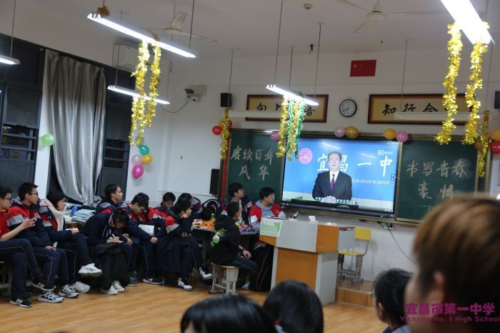 晚6点30分,校长付全新通过校园电视发表了热情洋溢的新年致辞,并率领中层以上干部走进每个班级,向老师和同学们致以新年的亲切问候和美好祝愿。学校领导每到一个班级,都与班上同学们亲切互动。