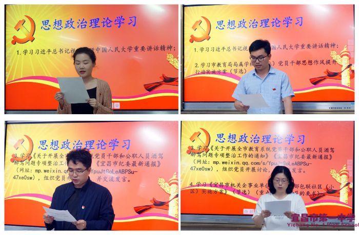 在思想政治理论学习中,党员们集中学习了习近平总书记视察调研中国人民大学重要讲话精神,市教育局局属学校(单位)党员干部思想作风提升行动实施方案,《宜昌市机关企事业单位及党员干部包联社区(小区)实施方案》中党员干部包联小区主要职责。纪检委员唐志海同志还带领大家学习了《关于开展全市教育系统党员干部和公职人员酒驾醉驾问题专项整治工作的通知》,宣读了宜昌市纪委监委对此问题的最新通报。与会党员积极讨论交流,表示要保持清醒认识,从严约束,健康自律,定期开展自查自纠,不断增强自身的遵规守规意识。